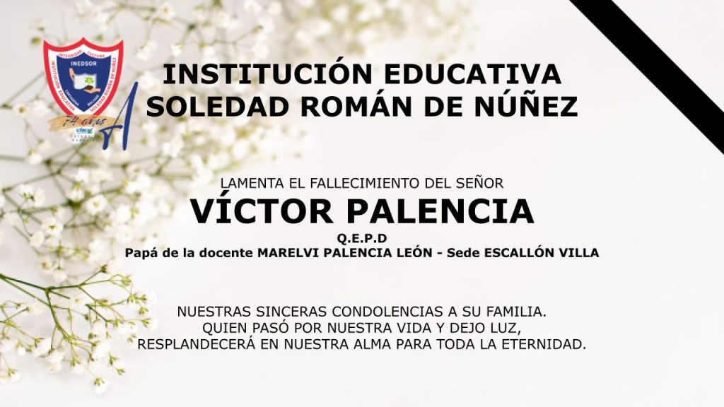 CONDOLENCIAS A LA DOCENTE MARELVI PALENCIA LEÓN POR EL FALLECIMIENTO DE SU PADRE, SR. VÍCTOR PALENCIA Q.E.P.D. 3 / septiembre Noticias redactor 0 Comments